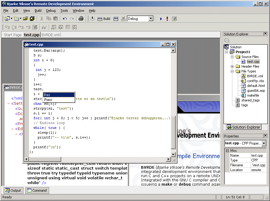 The BVRDE is despite its silly name, a fully integrated development environment for remote cross-platform compiling and debugging of UNIX and LINUX terminal applications.There are many editor systems available on Windows; many of which allow some form of remote connection. But they rarely take remote compiling seriously. So I decided to make an entire IDE with seamless integrated compilation and debugging possibilities.